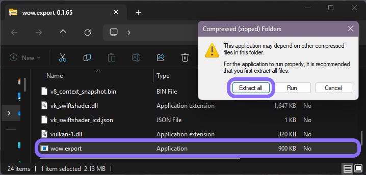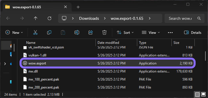 ✔️ Double-click wow.export > Extract all