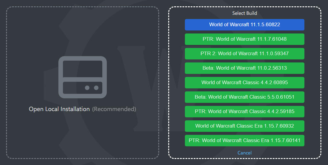 Open Local Installation uses your game files.